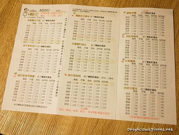 背面還有清炒義大利麵和奶蛋素料理可以選擇,
