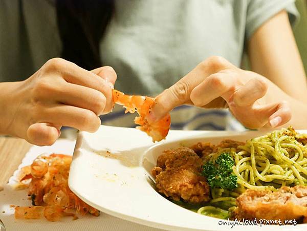 吃的雖然開心,但是這樣剝蝦真的不美啊,