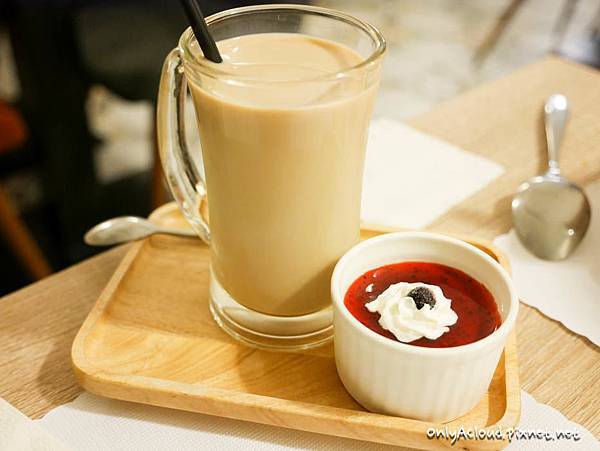 套餐的飲料和甜點,我們分別點冰奶茶和冰烏梅汁,