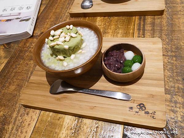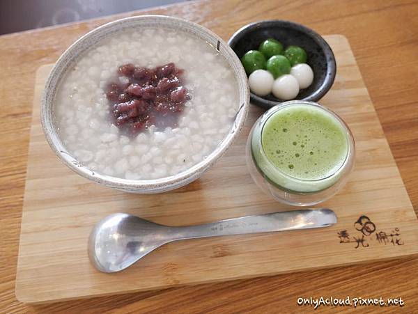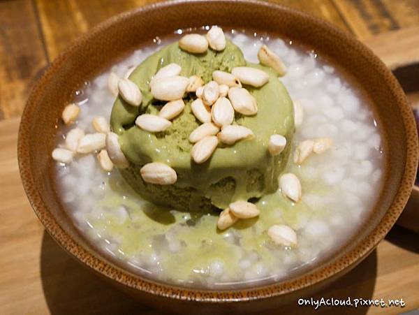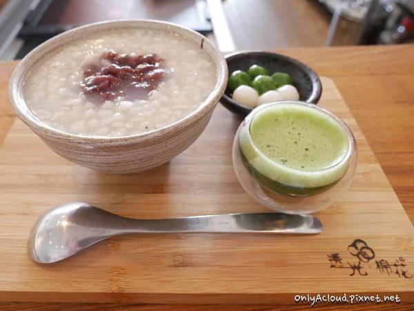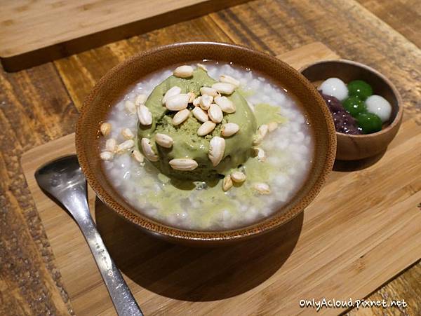 店員和我說可以單喝抹茶或是將抹茶倒入薏仁食用,
