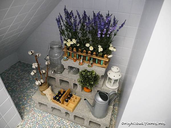 把平常古老建築樓梯斜腳下的陰暗角落,設計成小花園。