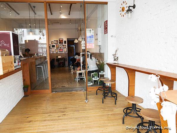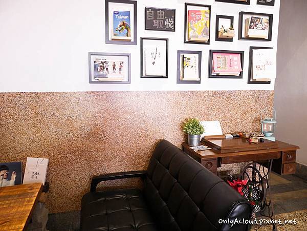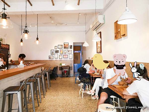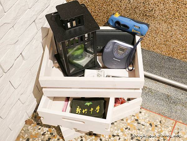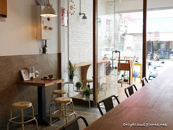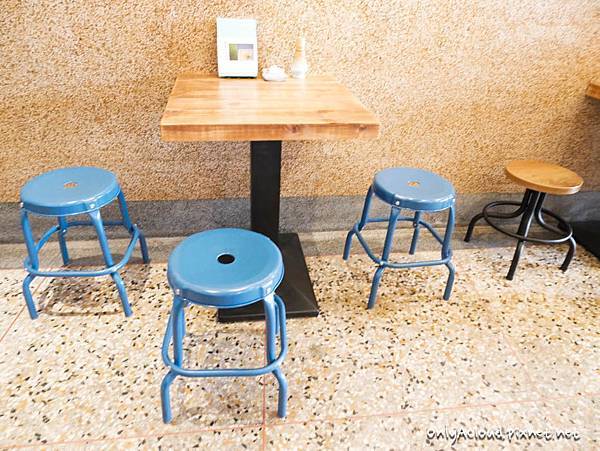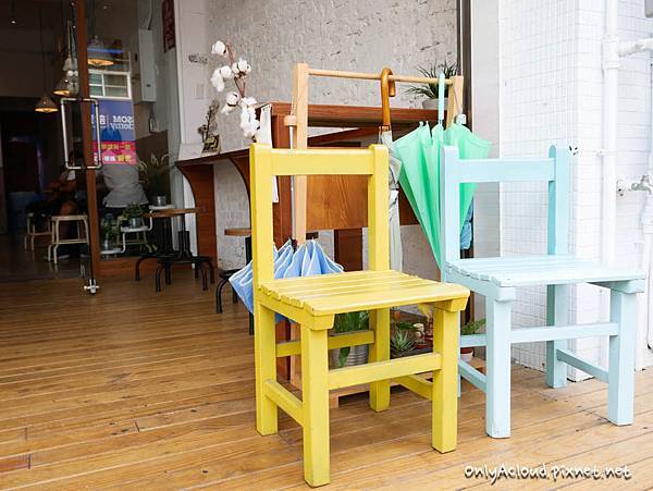 店門口還有兩張馬卡龍色的國小課桌椅,