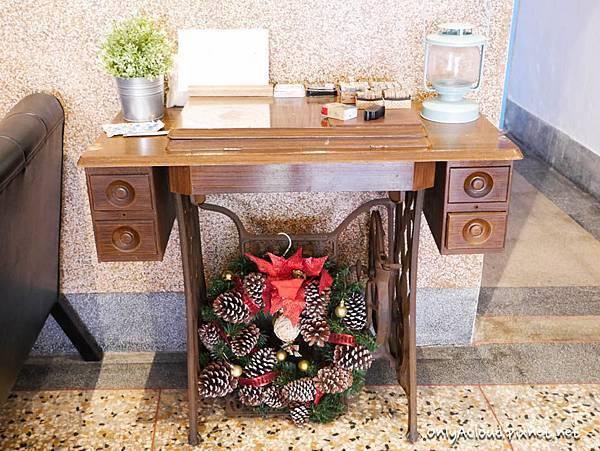 這張桌子非常引人注目,像是木製的仿舊縫紉機。