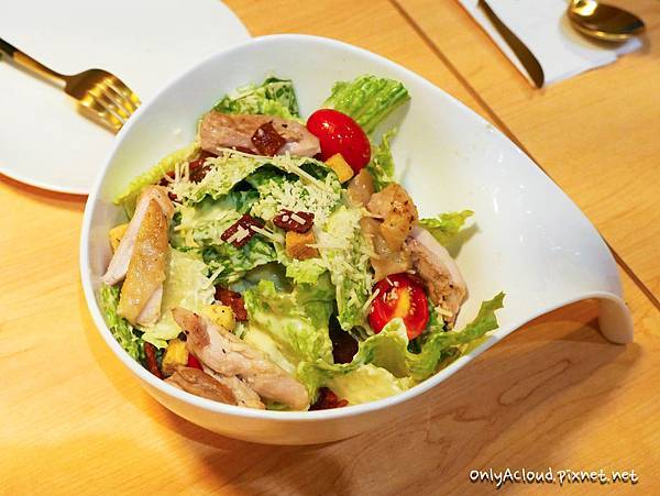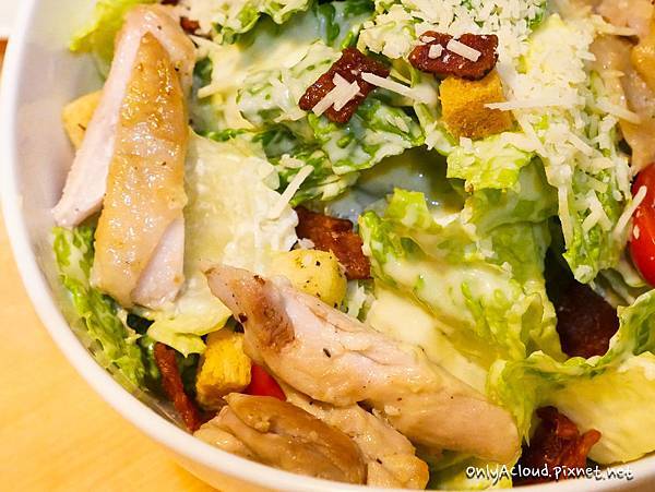 而醬料是左-奶油醬、中-青醬美乃滋醬、右-油醋醬。