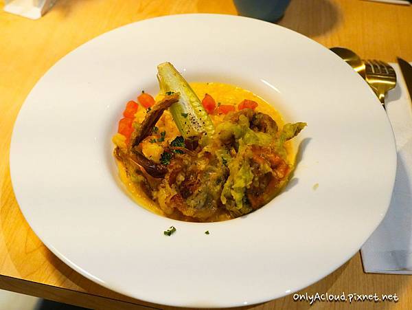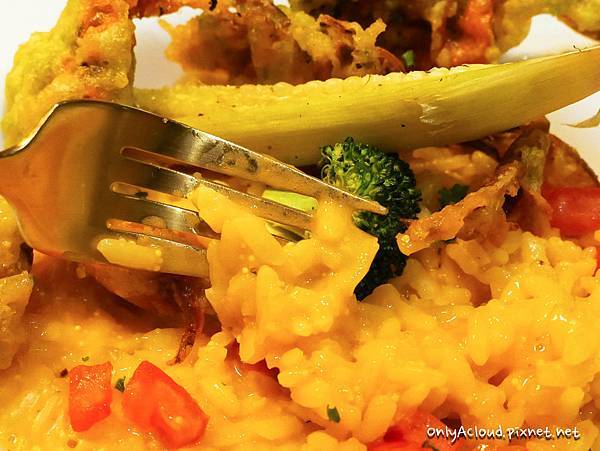 為了配合台灣人的口味, 料理的硬度中, 米粒用XO醬和吻仔魚來入味,