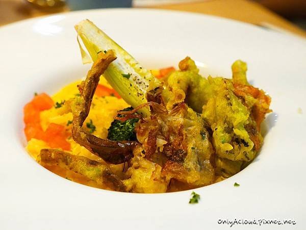Risotto with Sea Urchin Sauce and Deep Fried Soft-Shell Crab