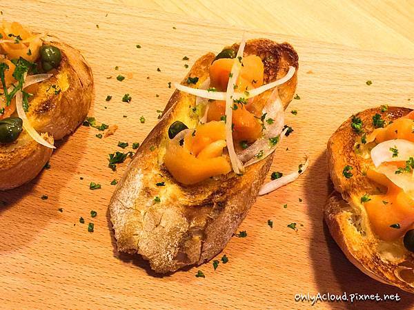 沒想過會送來的手工法式麵包+煙燻鮭魚(一人一份),