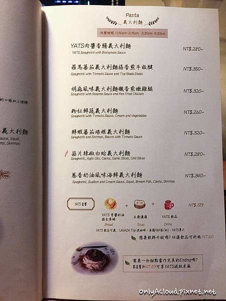 YATS葉子菜單MENU( 第三次更新:於2017/11/19 )