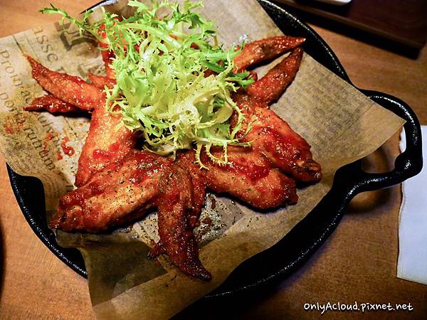 這道菜不是用脆皮的方式呈現, 食用起來雞翅是多汁水嫩不會乾柴