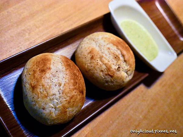 全麥麵包外酥內軟, 特製的青醬味道很棒,