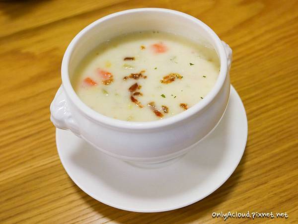 套餐提供的玉米濃湯有濃郁奶味,裡面的料也很多,口感還不錯。