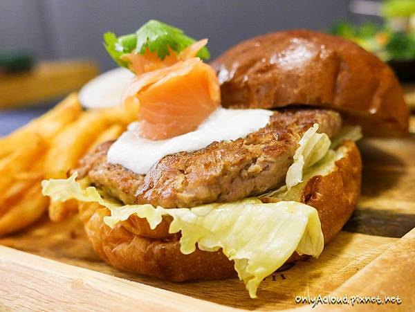 豬肉排還嘛嫩的,鮭片是微煙燻而且,並不會太重口味,